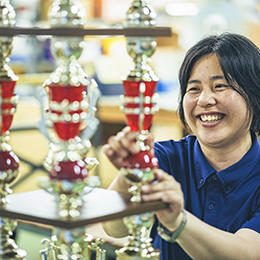 トロフィー、メダル、表彰盾、優勝カップなどの褒賞品を手掛ける当社。