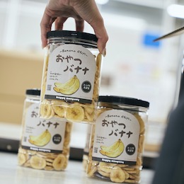 バナナチップス「おやつバナナ」も当社の人気商品。山梨から日本全国各地にお届けしています。