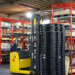 ◎ピッキング作業では、リーチリフトを使用します。