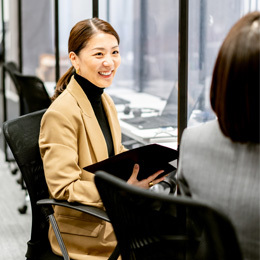 人事考課面談は半期に一度のペースで実施され、そのタイミングで昇格・昇給の可能性も。商談獲得数はもちろん評価対象ですが、単純に“数だけ”を見ているわけではありません。若手育成への関わり方や、チームの売上に対する貢献なども含めて、総合的に評価される仕組みです。個人戦ではなく、チームで成果を出す人が正当に報われる環境があります。
