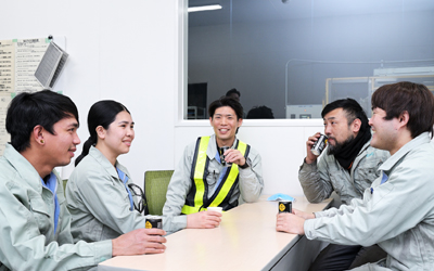 現場は和やかな雰囲気で、休憩中には自然と会話が生まれます。年齢や社歴に関係なく、互いにフォローし合う風土があります。休日も声を掛け合って釣りに出かけたり、部活動やサークルを楽しむメンバーも多くいます。