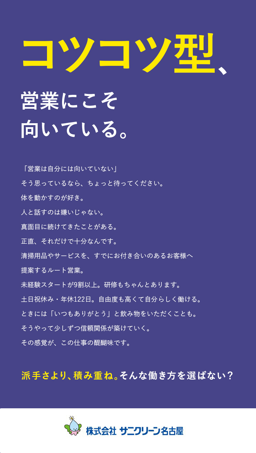 ルート集配と提案営業/未経験歓迎/年休122日/土日祝休み