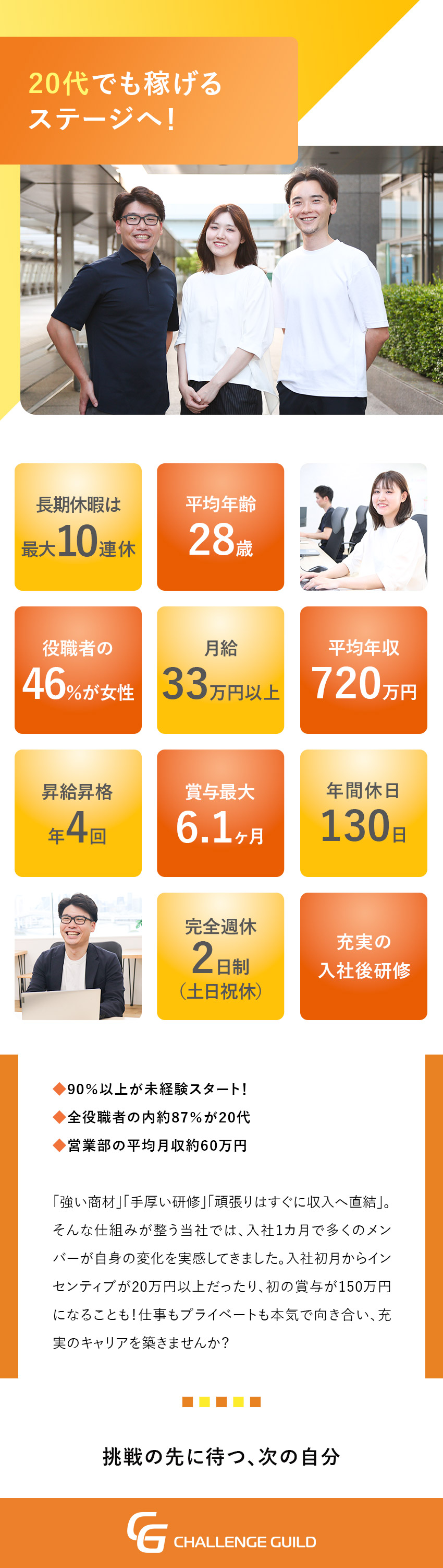 営業として必要な商品知識やノウハウはすべて入社後に学べるため、とにかく「稼ぎたい」「挑戦したい」という前向きな意欲さえあればOKという同社。