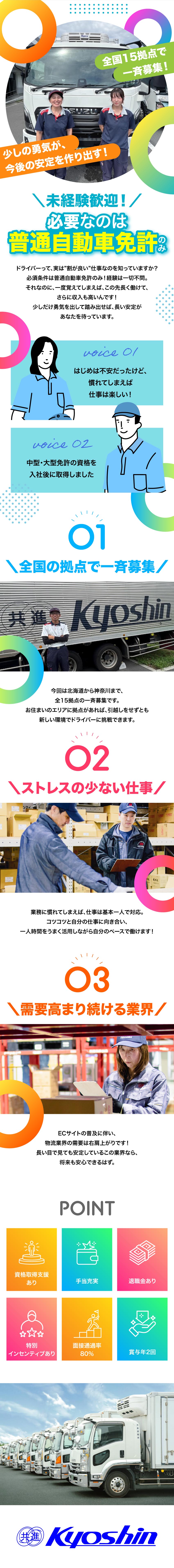 ドライバー/必須条件は普通自動車免許のみ/未経験の方も歓迎