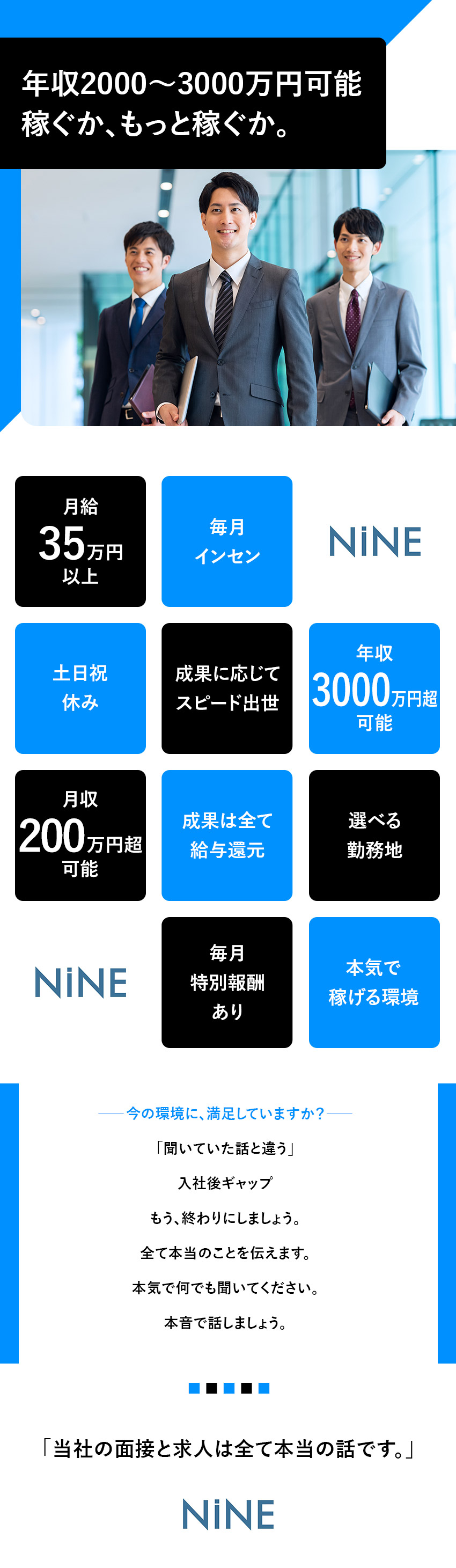 株式会社NINEは、「本気で稼ぎたい」「現状を変えたい」そんな方を全力でバックアップします!