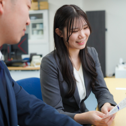 入社1~2週間は先輩の商談に同行し、実際の提案手法やトークを学びます。電話対応などの業務についても先輩がチェックし、サポートする体制を敷いているので、すべての対応を着実にステップアップしていけます。