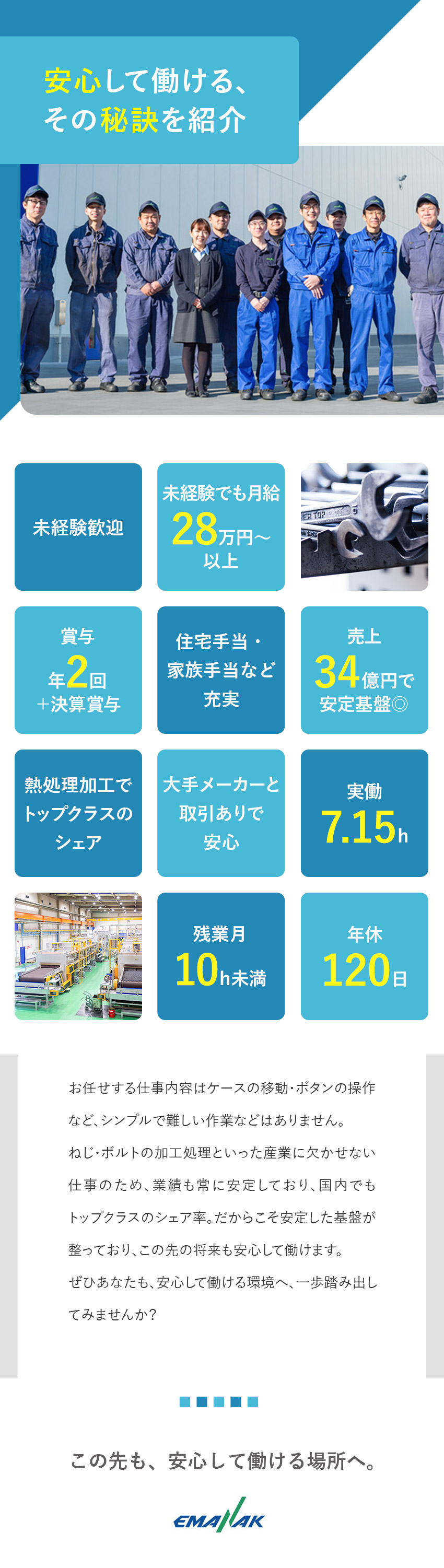 製造スタッフ/年休120日/未経験歓迎/完休2日/残業ほぼ無