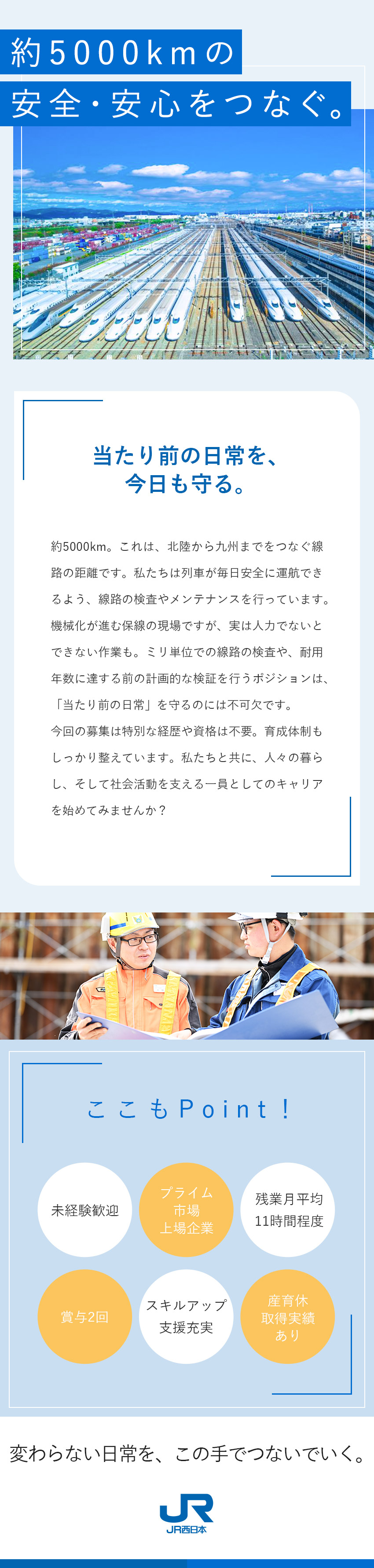 中国エリア<JR西日本>線路の検査・メンテナンス※未経験歓迎◎鉄道インフラに携わる!/残業月15h