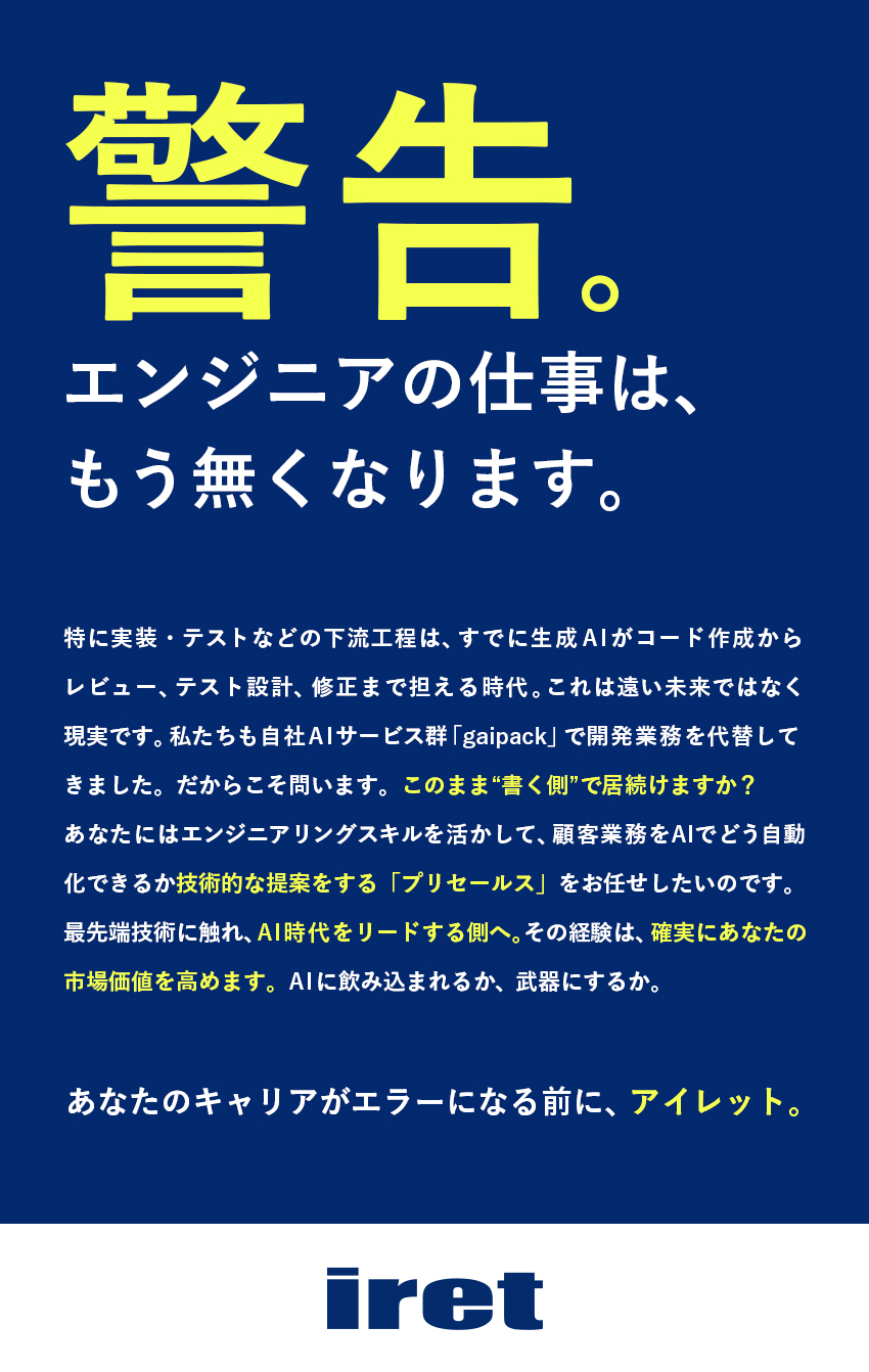 自社AIソリューションのプリセールス/土日祝休/リモート8割