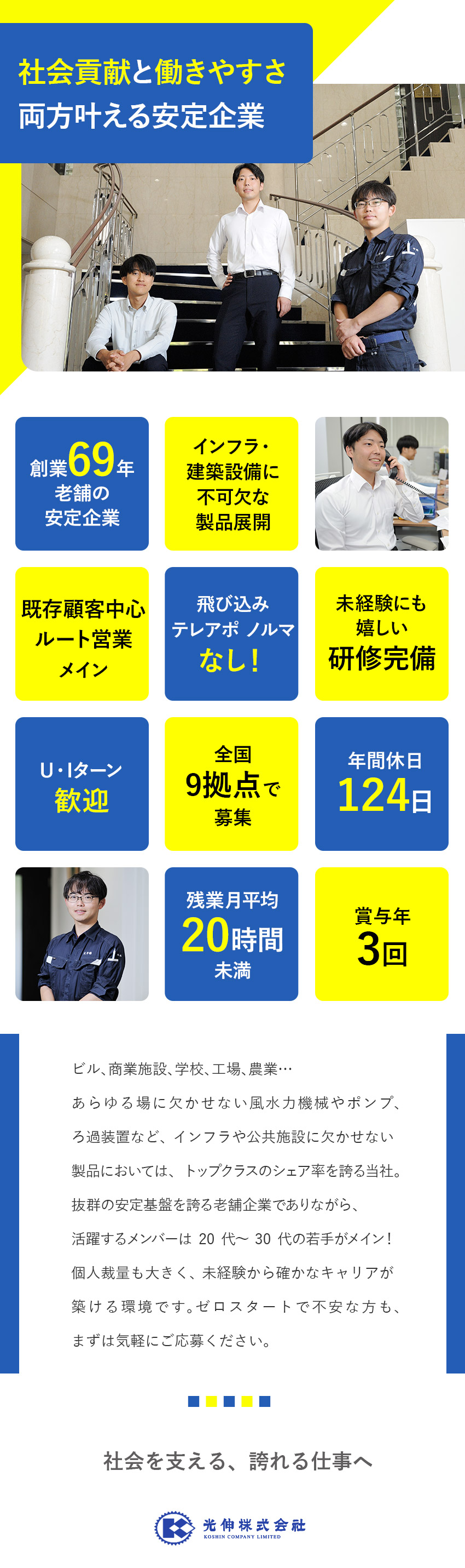 法人営業(インフラ関連)/年休124日/残業月20時間未満