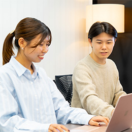 当社ではゼロから学べる研修やサポート体制が整っていると感じています。いきなり一人ということはなく、先輩とマンツーマンで案件を進行しながら、その都度わからないことを聞けたので、安心できました。
