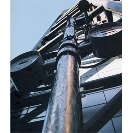 施工例:汐留日本テレビ/清水建設(グラインダー仕上げ柱・シースルーエレベーターなどを手掛けました)