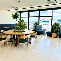 休憩室の昼食スペースです。社員がゆったりと食事や休憩を取れる過ごしやすい空間になっています。