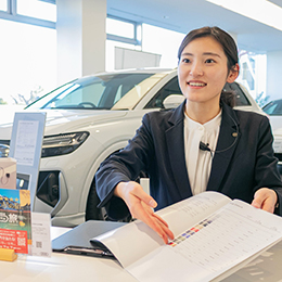 最初は「自分に高単価の車が扱えるのかな?」と不安もありました。でも、先輩のフォローもあり契約が取れるように。立ち振る舞いや言葉遣いもアップグレードされ、高単価だからこそ成長できる環境だと感じています。
