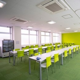 明るい色を基調とした食事スペースは、社員同士のコミュニケーションの場にもなります。