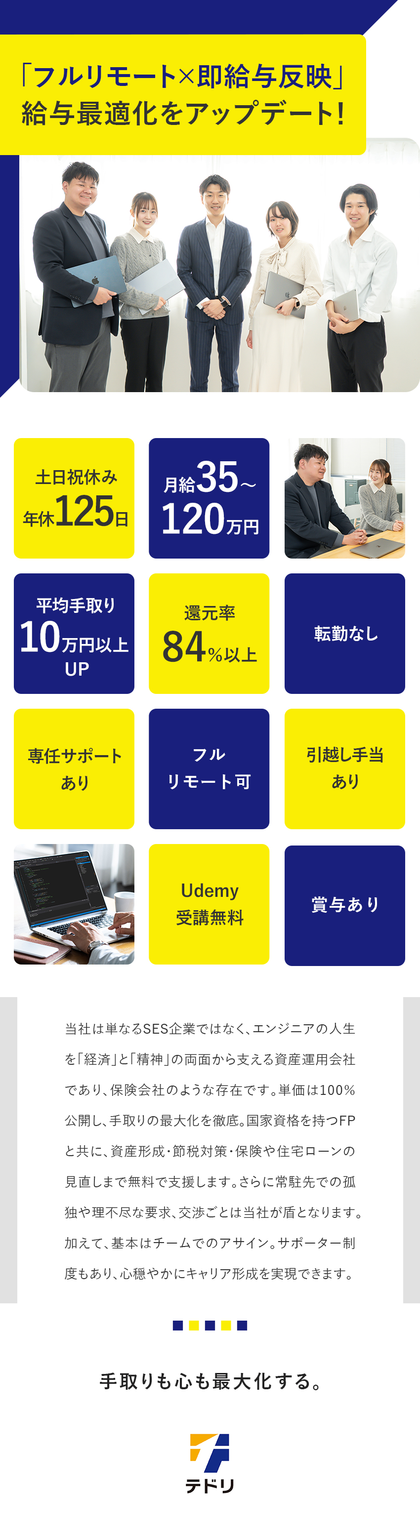 即給与反映/原則リモート/ITエンジニア/最大100%還元率