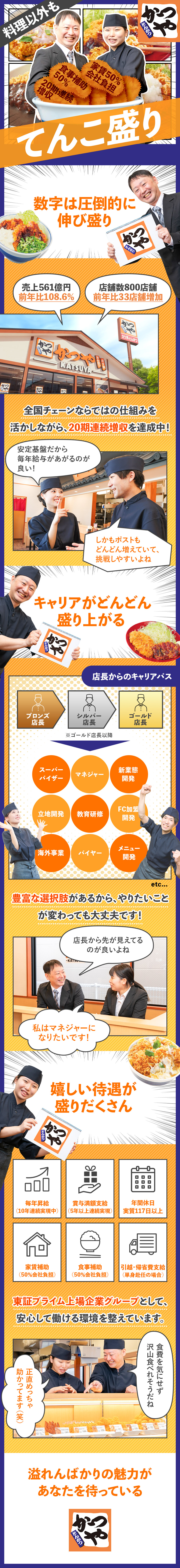 【神奈川/転勤無し(地域限定)】店長※『かつや』/プライム上場G/幅広いキャリアパス/定期昇給有
