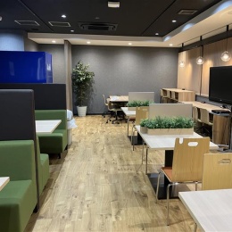 2025年リニューアルの東京社屋。木目とグリーン基調の落ち着いた空間です。