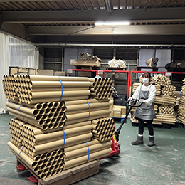 自社工場での紙管製造の様子。同じ敷地内で丁寧に作られた製品を積み込み、関西圏のお客様へ運びます。