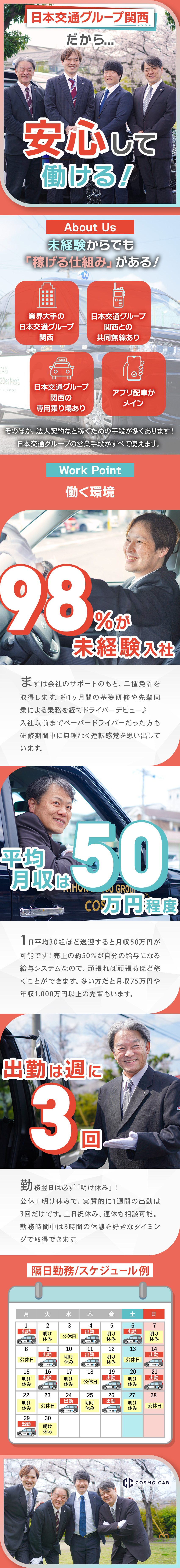 タクシー乗務員/未経験歓迎/入社祝金20万円/給与保障あり