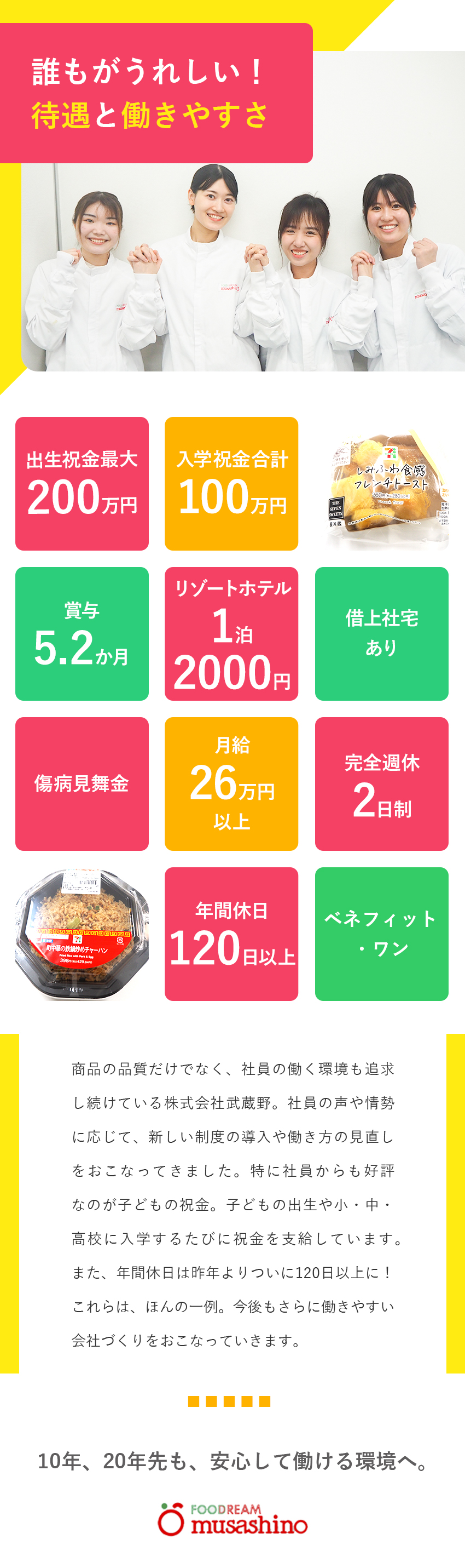セブンイレブン商品の品質管理/賞与4~5カ月/育児支援あり