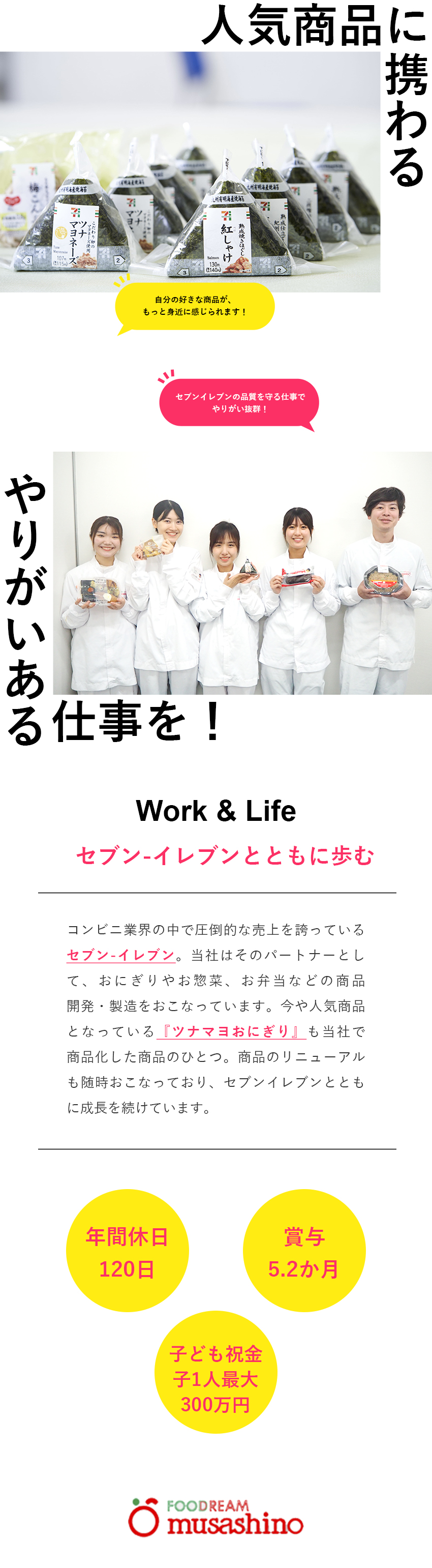 セブンイレブン商品の製造管理/賞与5.2カ月/育児支援充実