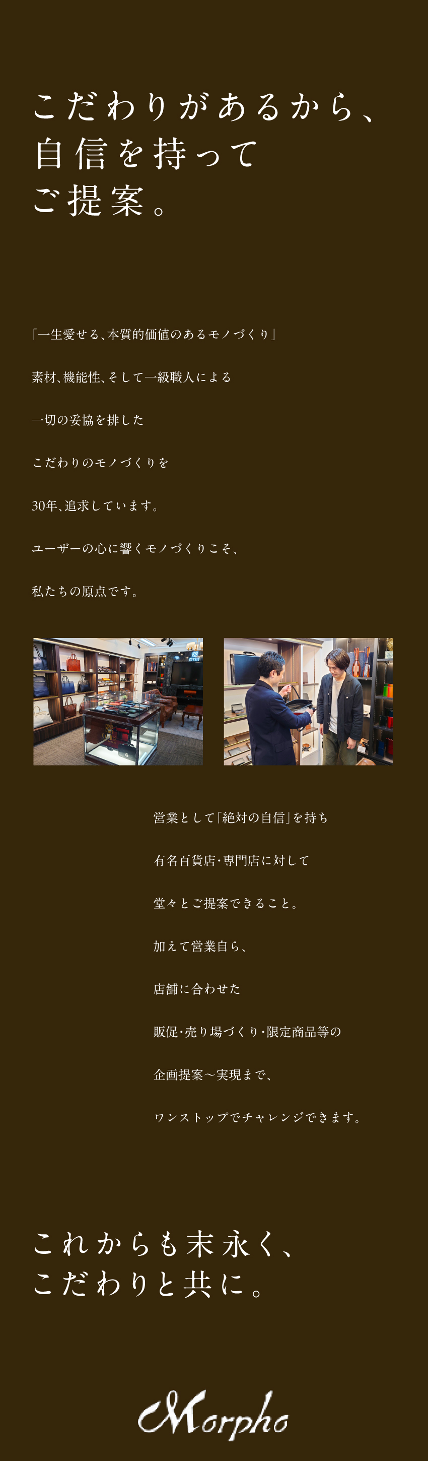 【百貨店・専門店へのルートセールス】一級職人が生み出す本物の皮革製品を企画提案★OJTで丁寧に指導