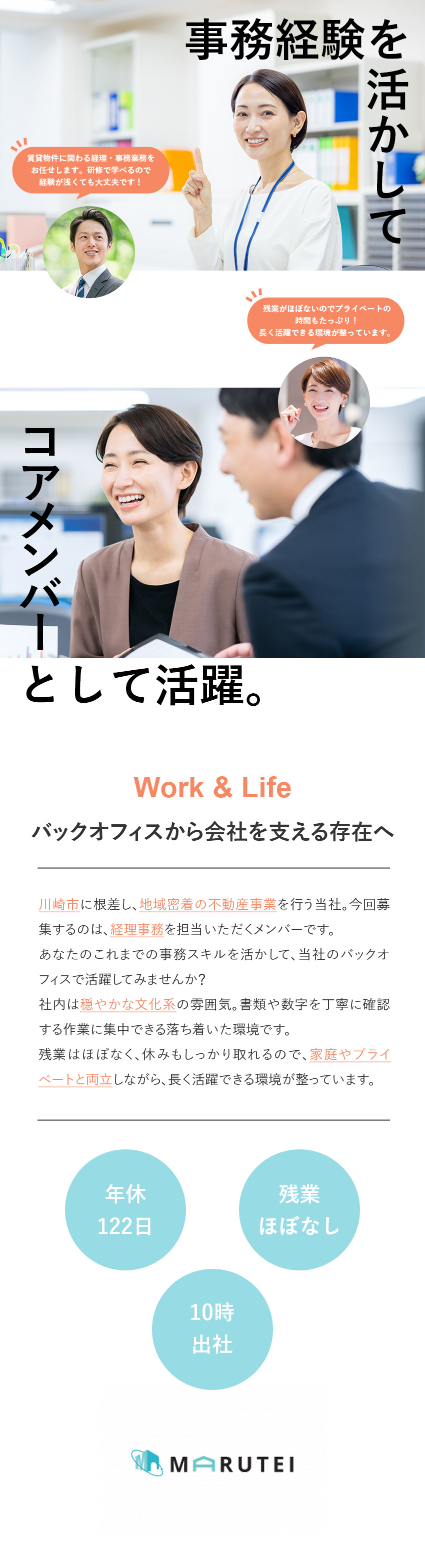基本定時退社で有給も取得しやすい環境。不動産業界の中でも働きやすさが際立つ職場です。