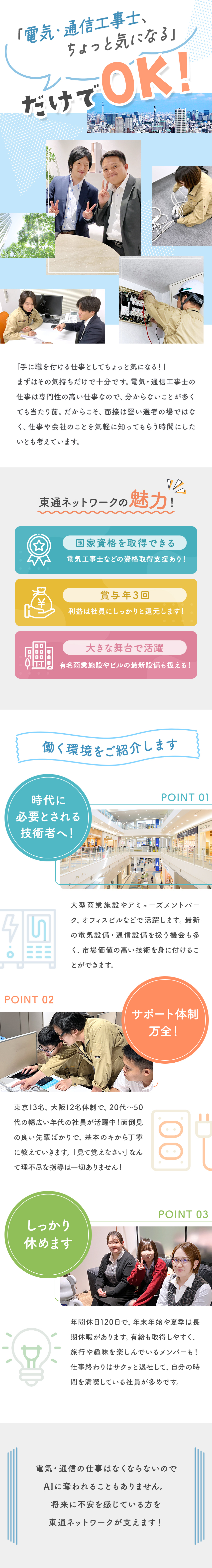 通信・電気工事士/未経験歓迎/賞与年3回/国家資格取得支援