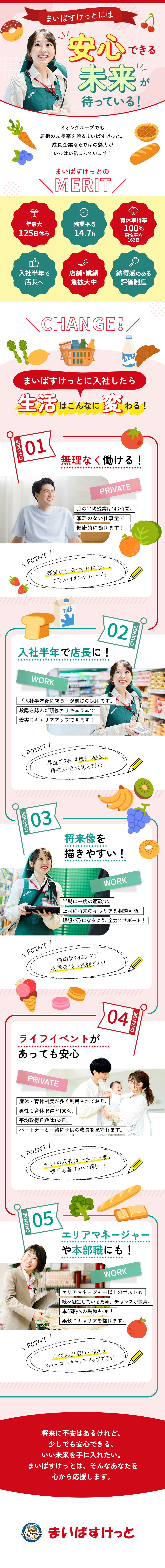 【1回面接】まいばすけっとのエリアマネージャー候補★夜勤無し×年休125日×残業15.8H/働き方◎