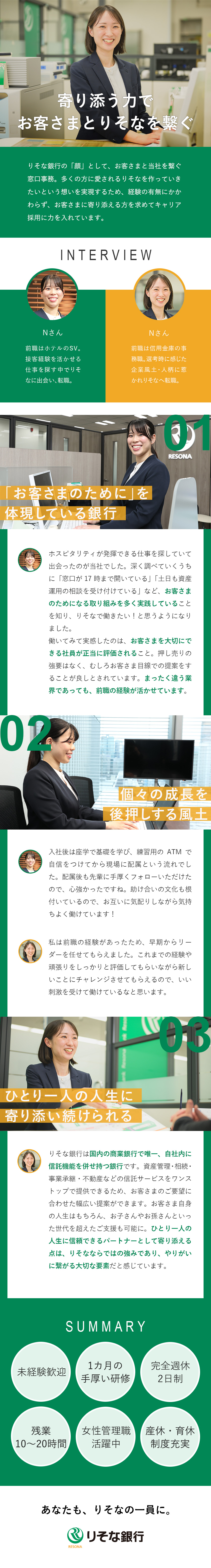 りそな銀行の受付・事務/未経験歓迎/完全週休2日制