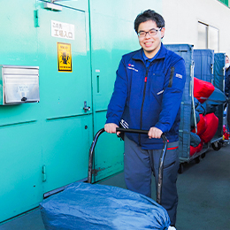 といった業務を通じ、快適で健康的な環境づくりのお手伝いをしています。川口工場では、ホテル・飲食店などを中心に、ユニフォームのお届け・回収を行っています。