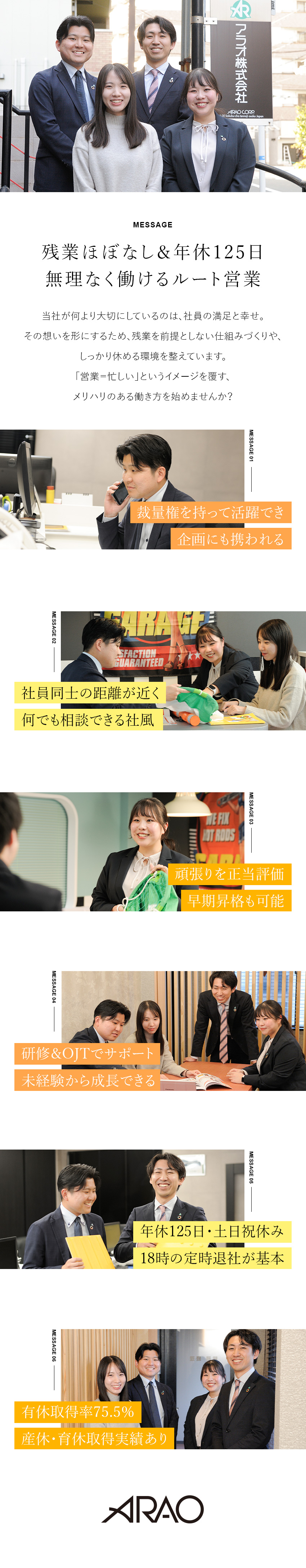 経験不問!法人向けルート営業/年休125日/残業ほぼなし