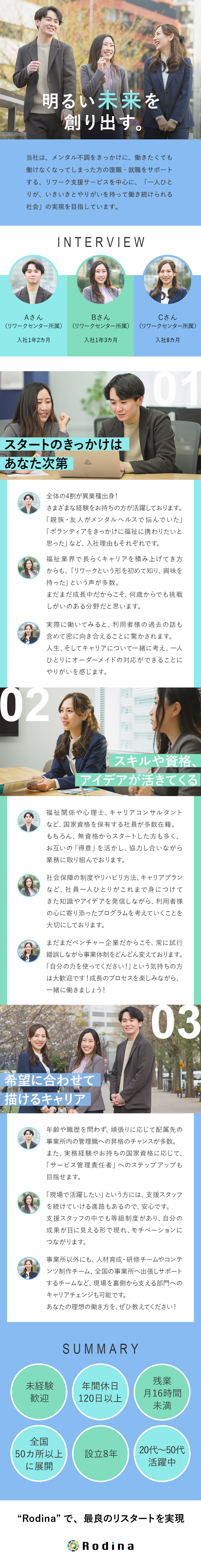 復職・就職支援スタッフ/未経験歓迎・資格不問/残業少なめ