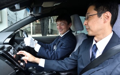 入社後まずは、二種免許取得に向けて10日間の研修を行います。また約1カ月間、ドアの開け方やアクセル・ブレーキの踏み方、接客などの基本的な知識や技術を取得する研修です。