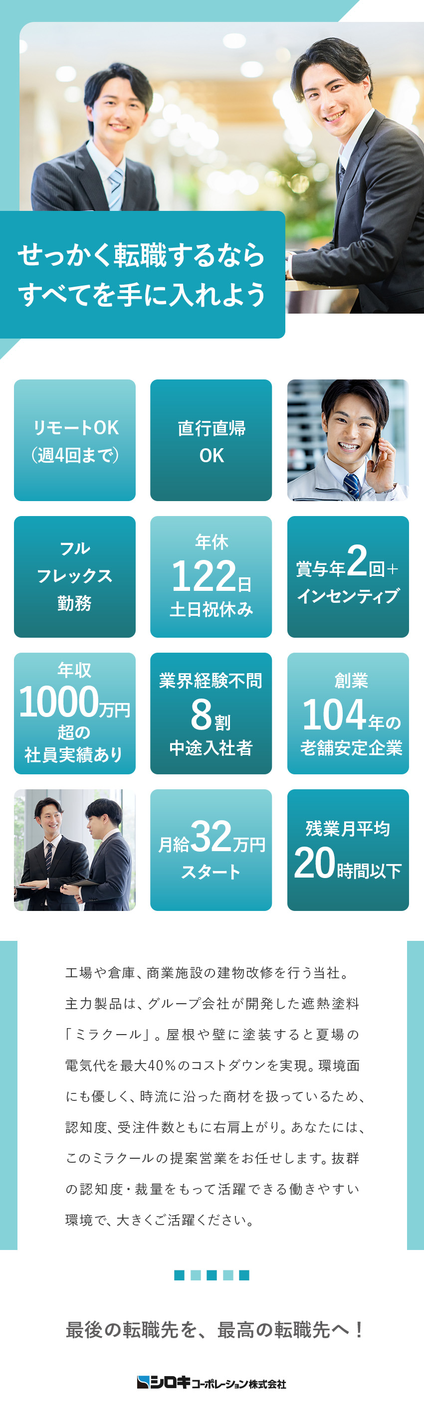 法人営業/業界経験不問/週4回在宅勤務可/フルフレックス