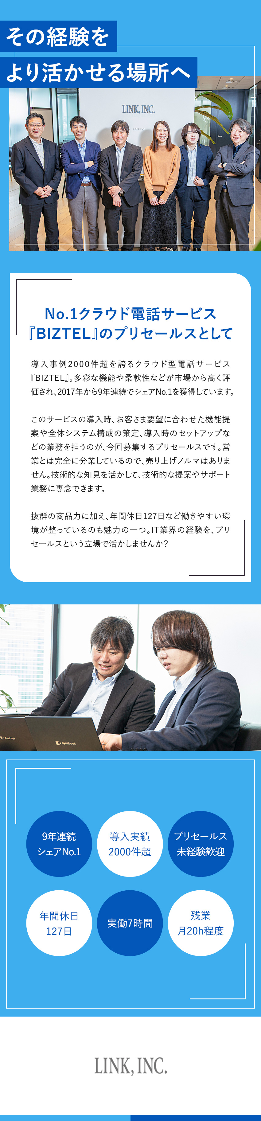 【転勤無】クラウド型電話サービス「BIZTEL」のプリセールス◆所定7h/年休130日/福利厚生◎