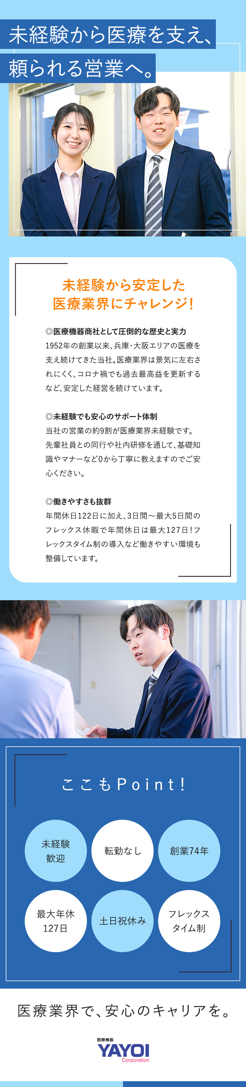 医療機器のルート営業/未経験歓迎/最大年休127日/土日祝休