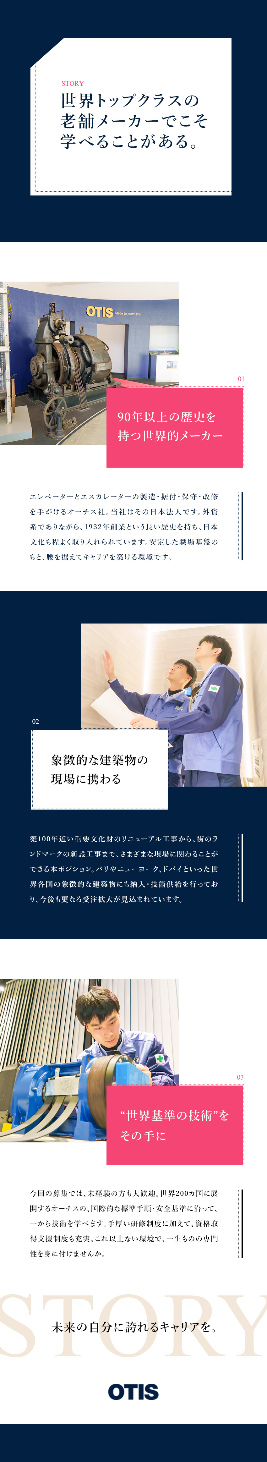 エレベーターの組立・設置/未経験歓迎/老舗メーカーで手に職を