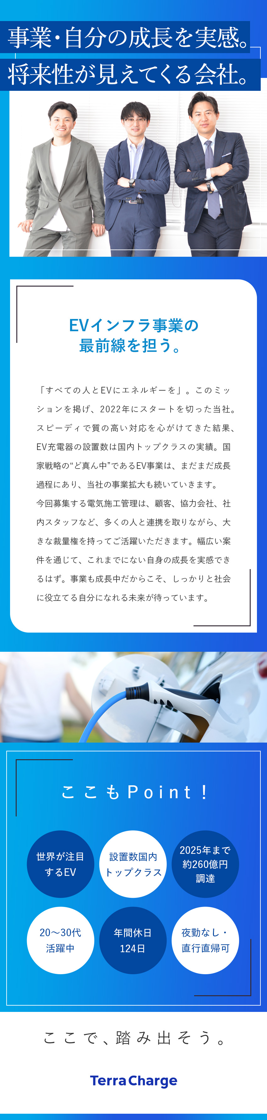 未経験歓迎/EV充電器の電気施工管理/土日祝休/年休124日