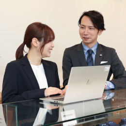 入社後は専務の営業に同行し、営業スタイルや提案フローを覚えていきます。貴金属や高級時計の商品知識はもちろん、資産運用の知識、経営者の視点まで、専務から幅広く学ぶチャンスです。