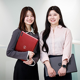 人事はお客様や社内メンバーなど、多くの“人”と深く関わる仕事。だからこそ、相手の気持ちを考えた明るい対応ができるかを大切にしています!