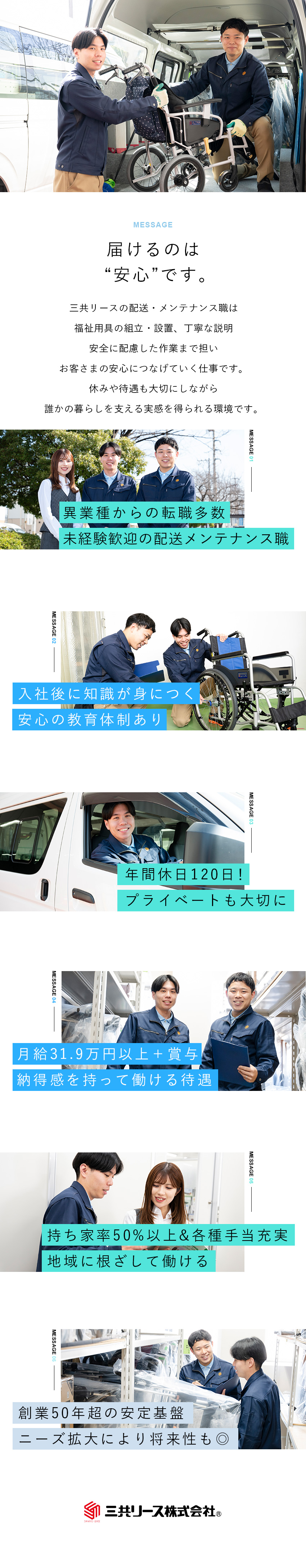 配送メンテナンス職/未経験歓迎/月給31.9万円~/手当充実
