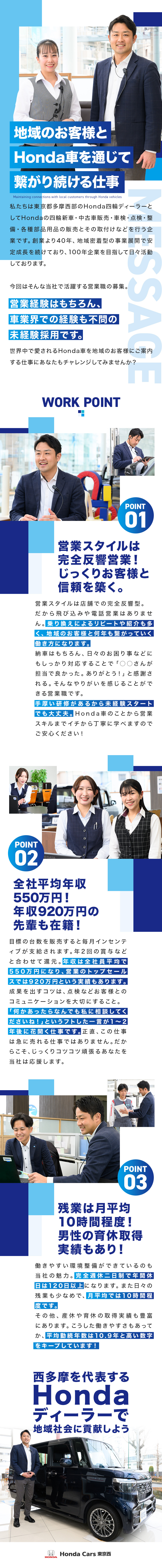 Honda車の反響営業/平均勤続年数10年以上/未経験歓迎