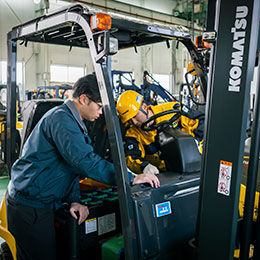 フォークリフト・物流機器のコンサルティング営業という少し特殊な仕事だからこそ、入社後は製品知識や営業方法についてもイチから教えていきます。初めての営業でも「コマツ」のネームバリューがあるので安心です。入社から3か月程度は先輩社員の営業同行などでしっかりサポートしていきます。