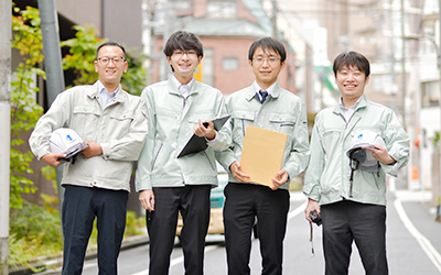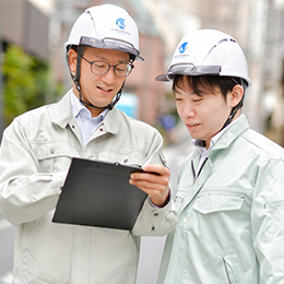 一人で行う業務ではなく、チーム単位で協力して行います。最初は写真撮影や作業チェックリスト確認、スケジュール管理補助、書類整理などからスタート。先輩の同行~小規模プロジェクト~大規模プロジェクトと段階的に成長できます。