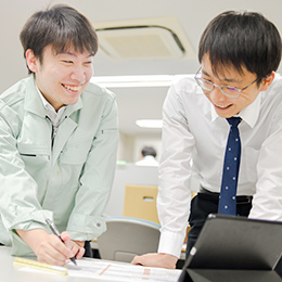 アシスタントからスタートした後は、将来的に設計、現場管理、管理部門などのキャリアアップおよびキャリアチェンジも可能です。サポートを通じて全体の流れを覚えた後は、希望する業務やポジションに挑戦することもできます。