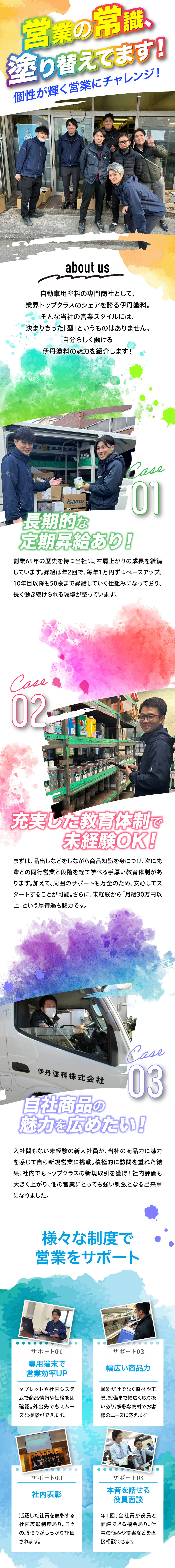 自動車用塗料ルート営業/年休120日/賞与年3回/未経験歓迎