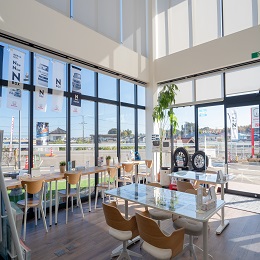 2020年に移転したばかりの新しい整備工場です。福利厚生や教育制度も充実しています。