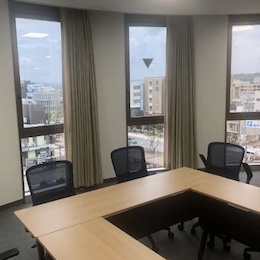会議室からの景色は最高!オフィスは広々としていてキレイです。車やバイクでの通勤もOK!